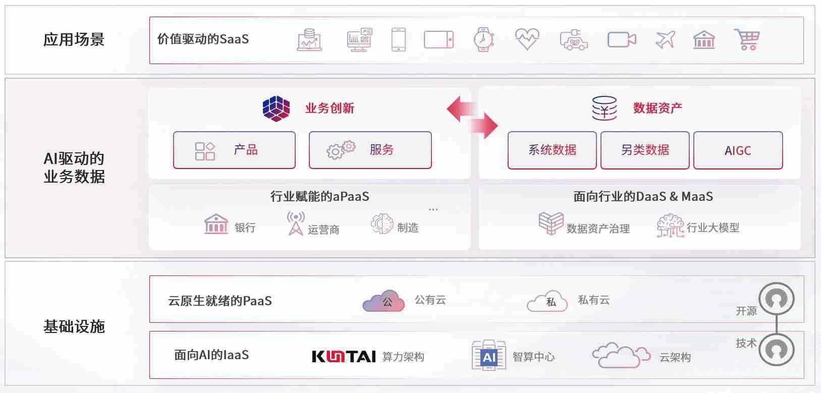 数字时代,,围绕企业数字化转型的关键要素,,,,1号娱乐数码开创性的提出数云融合战略和技术体系框架,,着力在云原生、、、、数字原生、、、AI原生和信创产业上架构产品和服务能力,,,为处在不同数字化转型阶段的快消零售、、汽车、、金融、、、、医疗、、、、政企、、教育、、、运营商等行业客户提供泛在的敏捷IT能力和融合的数据驱动能力,,构建跨界融合创新的数字业务场景和新业务模式,,,,助力企业级客户建立面向未来的核心能力和竞争优势,,,,全面推动社会的数字化、、、智能化转型升级。。。